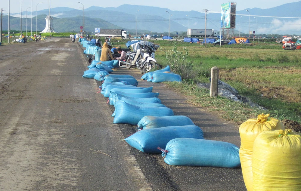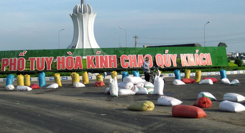 Những ngày này các phương tiện giao thông lưu thông trên quốc lộ 1 (đoạn qua ngã tư rẽ đường tránh thành phố Tuy Hòa, Phú Yên) đều chứng kiến sự hối hả của những người nông dân nơi đây.
