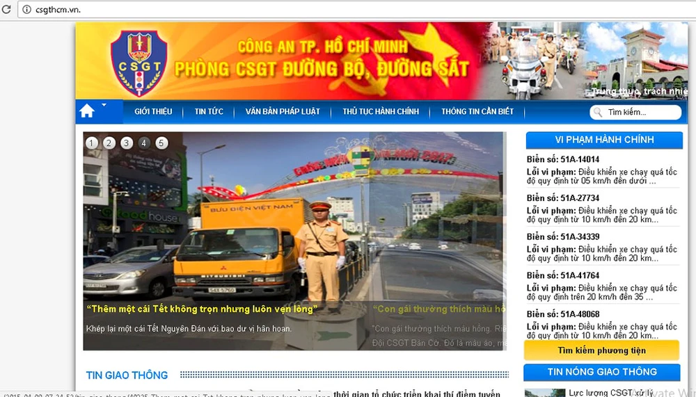Trang thông tin điện tử của Phòng CSGT đường bộ - đường sắt Công an TP.HCM. Ảnh: L.THOA