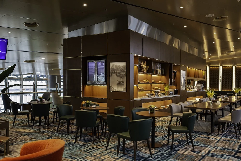 Không gian nghỉ ngơi, giải trí và làm việc của hành khách hạng thương gia trong lúc chờ chuyến bay được thiết kế theo phong cách sang trọng, hiện đại, đáp ứng hệ thống tiêu chuẩn khắt khe của các hãng hàng không 5 sao nổi tiếng thế giới như Cathay Pacific, Emirates…