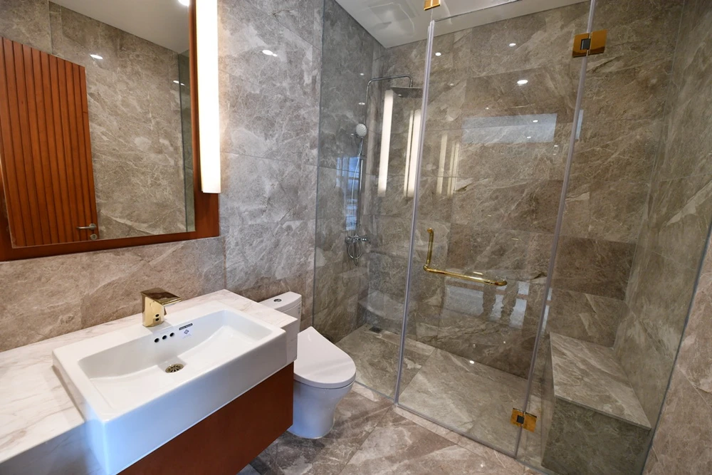 Trang thiết bị phòng tắm và vệ sinh được nhập khẩu từ các thương hiệu hàng đầu khu vực và thế giới như Kohler, Grohe…