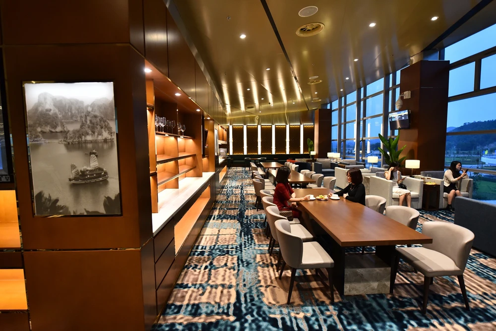 Hướng tầm nhìn ra vườn treo xanh mát, ngắm tháp không lưu nổi bật trên nền trời xanh thẳm và tận hưởng không gian thư giãn, giải trí đẳng cấp với đường truyền internet riêng, màn hình tivi lớn ngay khu vực trung tâm, quầy bar cocktail và khu vực buffet phục vụ các món ăn nhẹ hấp dẫn, hành khách hạng thương gia sẽ cảm nhận một chất lượng dịch vụ xứng tầm và khác biệt khi đến với Cảng hàng không quốc tế Vân Đồn.