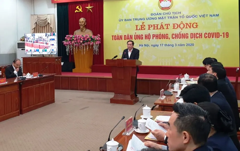 Sáng 17-3, Đoàn Chủ tịch Ủy ban Trung ương MTTQ Việt Nam tổ chức lễ phát động toàn dân ủng hộ tham gia phòng, chống dịch COVID-19.