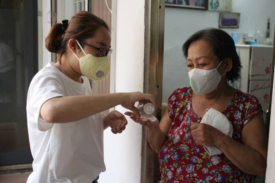 “Họ gõ cửa từng nhà, tặng khẩu trang, gel sát khuẩn và chúc chúng tôi bình an”, chị Mai ngụ tại chung cư Lý Văn Phức thông tin.