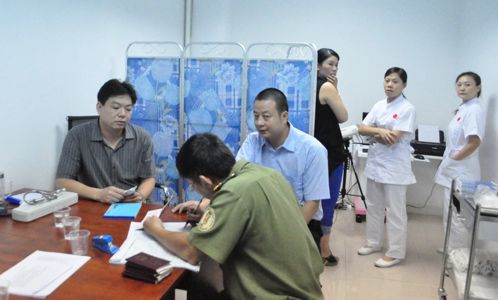 Một phòng khám bác sĩ Trung Quốc hoạt động trái phép bị các cơ quan chức năng kiểm tra. Ảnh" TÙNG SƠN