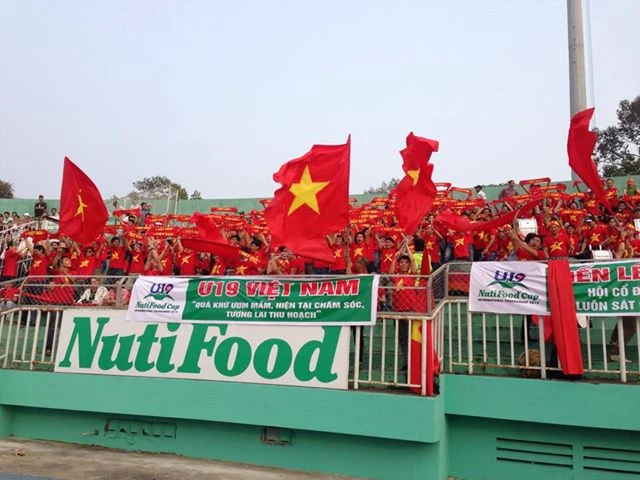 NHM cổ vũ rất nhiệt tình nhưng vẫn không thể giúp U19 VN có được kết quả tốt trước U19 Roma. Ảnh PHẠM QUANG