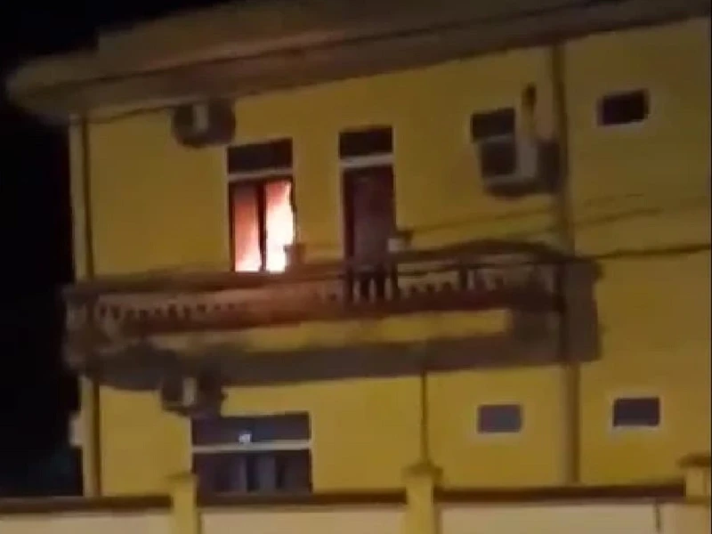 Phòng phó hiệu trưởng phụ trách chuyên môn của Trường THPT Hải Lăng bị cháy. Ảnh: FB