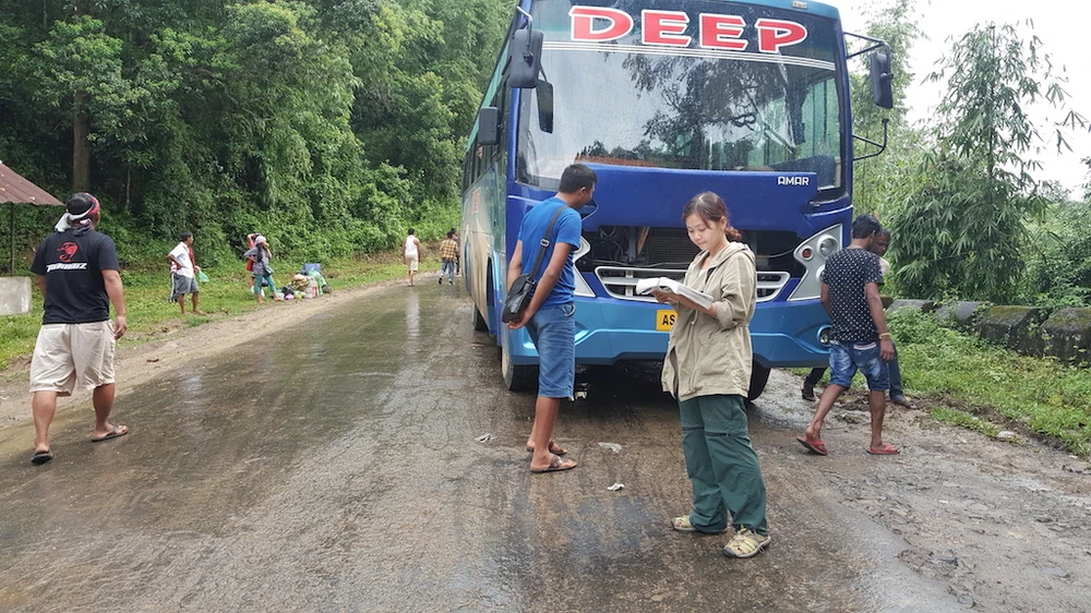 Thế nhưng chỉ ra khỏi Dimapur một chút là những khu rừng thẳm chạy dài vô tận, kèm theo là đường đi rất tệ, dằn xóc. Xe thường phải dừng lại nhiều tiếng đồng hồ để chờ sửa đường.
