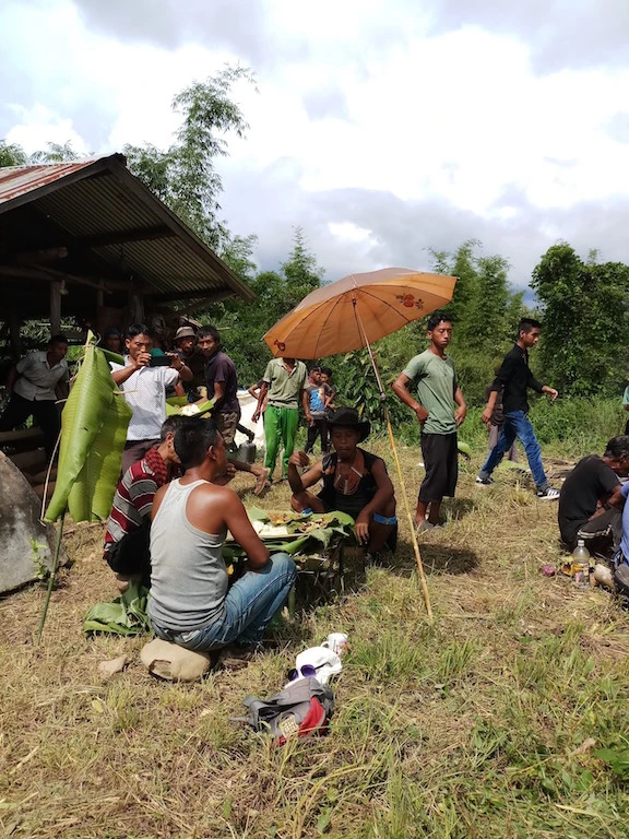 Bữa tiệc chỉ dành cho nam giới, cánh phụ nữ và trẻ em ngồi riêng phụ trách nấu nướng,