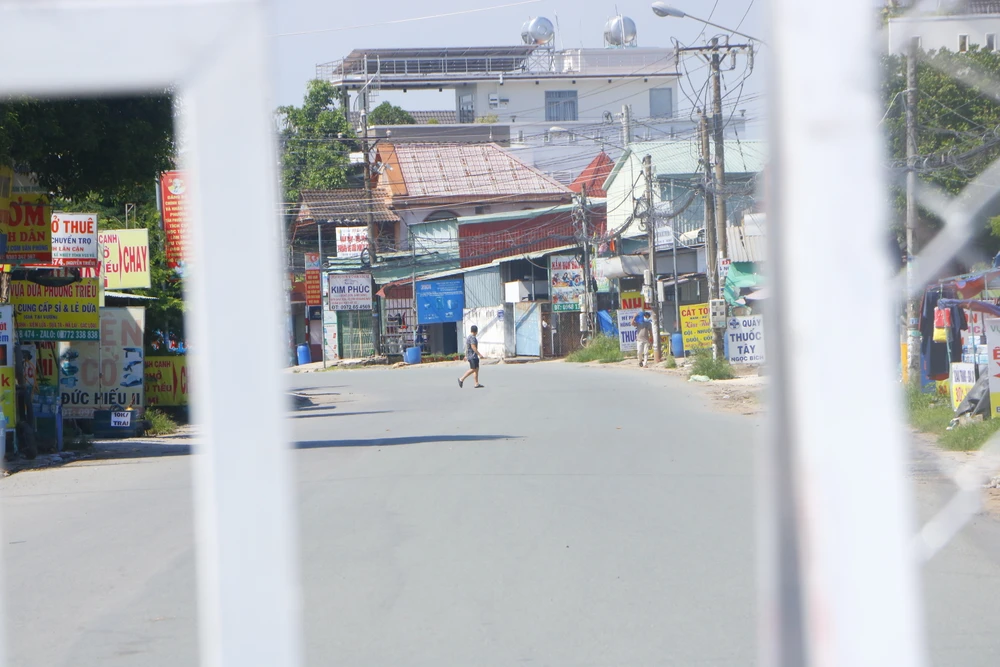 Chính quyền khuyến cáo người dân phường Tân Phước Khánh chỉ ra ngoài khi thật sự cần thiết. Ảnh: LÊ ÁNH