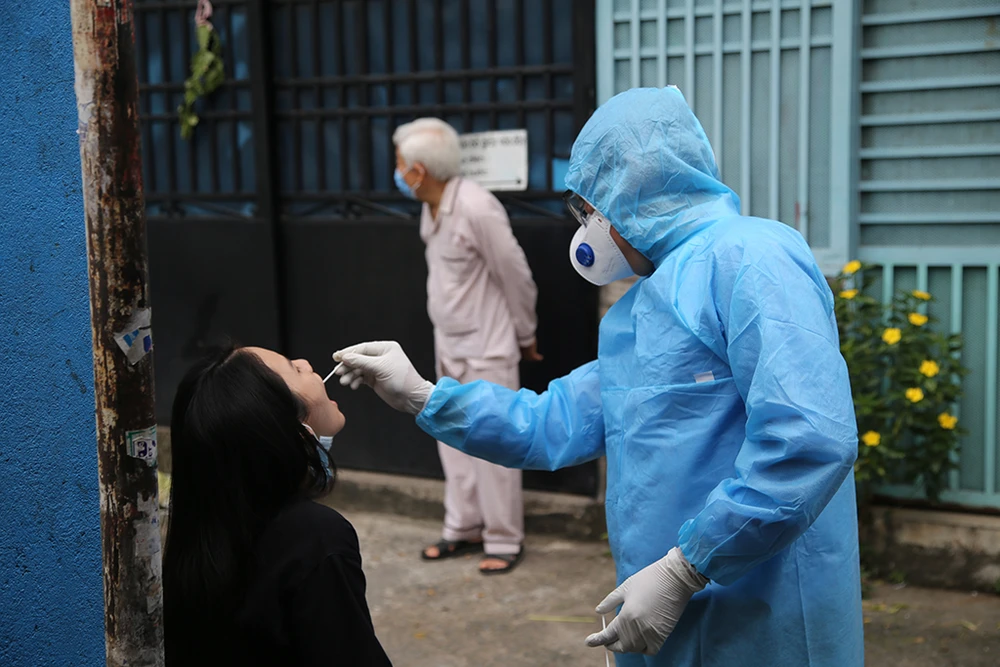 Nhân viên trung tâm y tế dự phòng quận 6 lấy mẫu phết để kiểm tra. Ảnh: TÂN - YÊN
