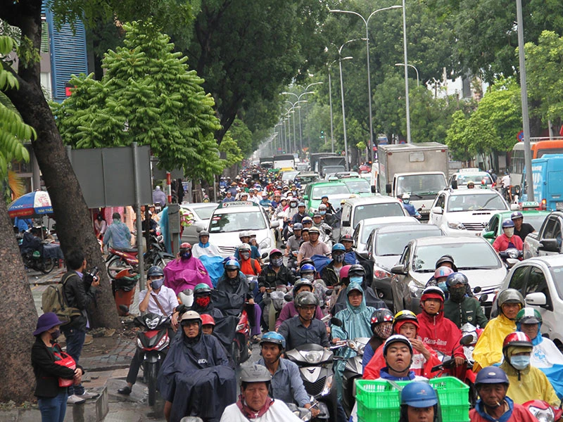 Giao thông qua khu vực bị ùn ứ nghiêm trọng. Ảnh Nguyễn Tân.