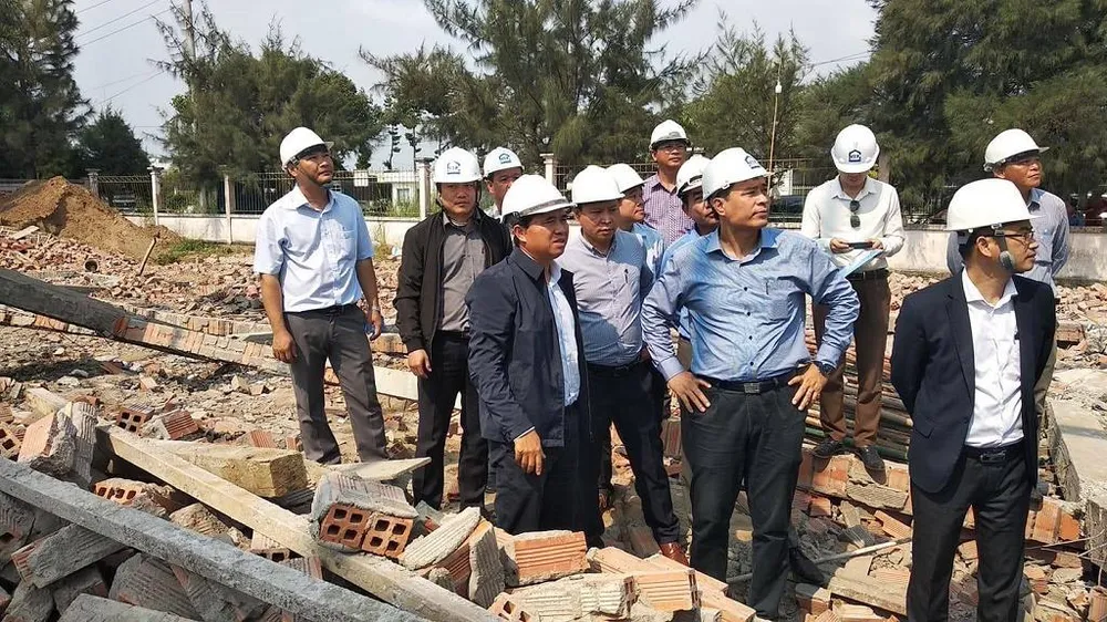 Liên quan vụ sập tường làm chết sáu người, ngày 16-3, Thứ trưởng Bộ Xây dựng Lê Quang Hùng cùng đoàn công tác của Bộ đã đến khảo sát hiện trường vụ tai nạn.