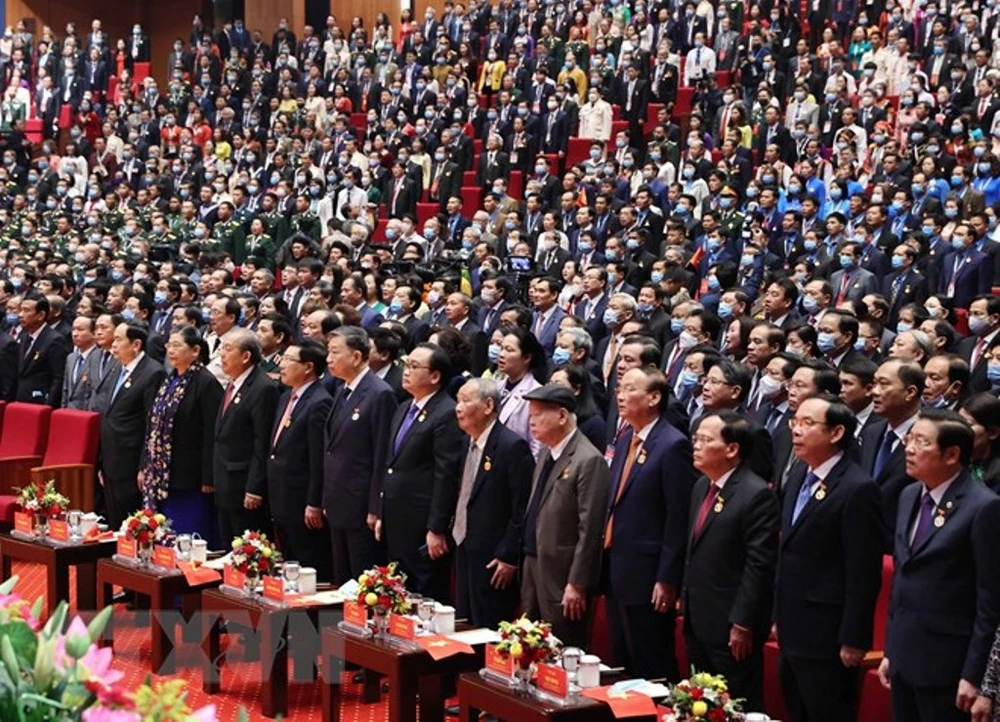 Các lãnh đạo, nguyên lãnh đạo Đảng và Nhà nước cùng các đại biểu tại lễ khai mạc. Ảnh: TTXVN
