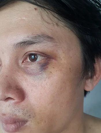 PV Thanh Tàu bị bầm mắt, sau đó bị công an “mời” về trụ sở. Ảnh: CTV