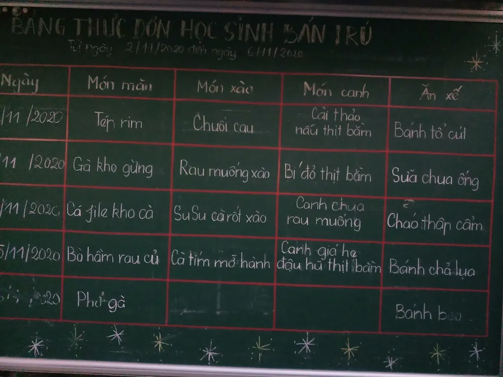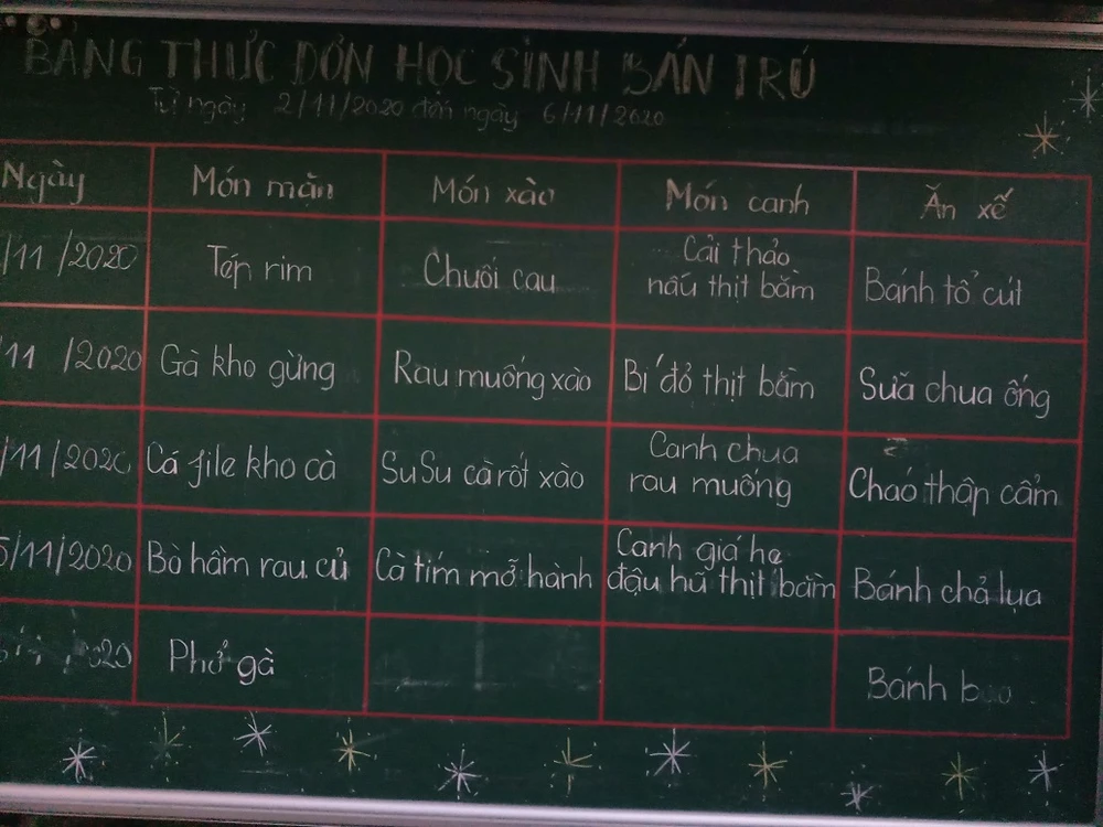 Về vấn đề phụ huynh phản ánh bữa cơm lèo tèo chỉ cơm, trứng, canh, Hiệu trưởng lý giải, phần ăn trưa gồm 3 món xào, mặn và canh ăn kèm với cơm. Sở dĩ phụ huynh nhìn thấy suất ăn ít vì bức ảnh được chụp lúc học sinh sắp ăn hết. Hơn nữa, hôm đó món xào đã thay bằng trái chuối lớn để đổi khẩu vị cho các em. Bởi thực tế cho thấy học sinh thường ít ăn món xào. Bữa ăn vẫn có trứng chiên thịt đầy đủ dinh dưỡng.