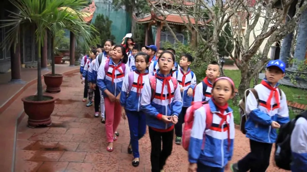 Học sinh trường tiểu học Vĩnh Niệm tham gia chương trình Em yêu lịch sử quê em. Ảnh: tư liệu