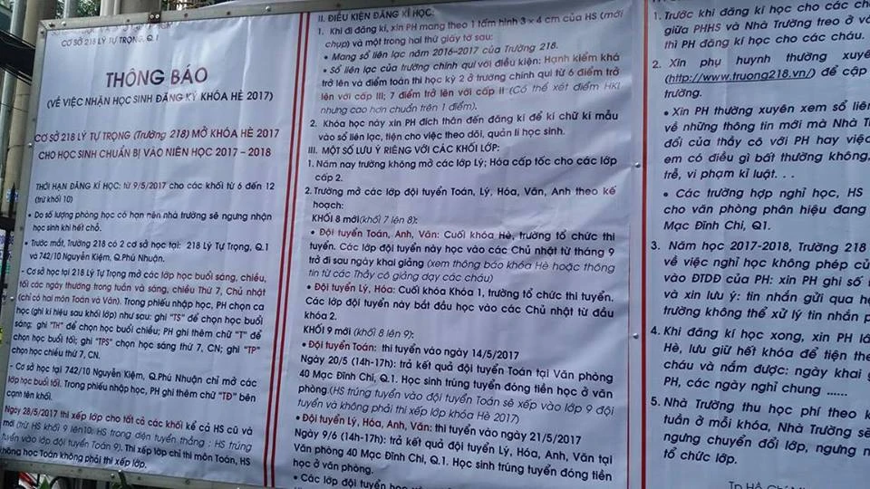 Theo thông báo, trung tâm nhận đăng ký học khóa hè từ ngày 9-5 cho các khối lớp từ lớp 6 đến lớp 12 (trừ khối 10). Học sinh học cả ba buổi sáng, chiều và tối các ngày thường, cả chiều và tối thứ 7, chủ nhật.