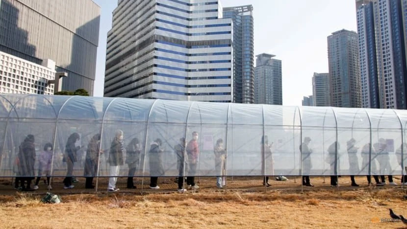 Người dân Hàn Quốc xếp hàng chờ xét nghiệm COVID-19 tại một địa điểm xét nghiệm tạm thời tại nhà ga ở Seoul, ngày 8-12. Ảnh: REUTERS