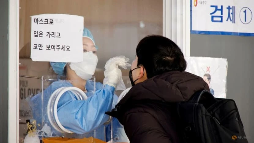 Nhân viên y tế lấy mẫu xét nghiệm COVID-19 từ một người đàn ông ở một nhà ga tại Seoul, ngày 8-12. Ảnh: REUTERS