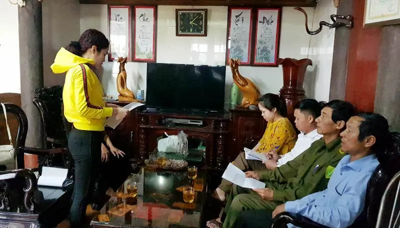 Công an xã Hưng Tân cũng đến cùng gia đình cô H. chứng kiến buổi xin lỗi trên.