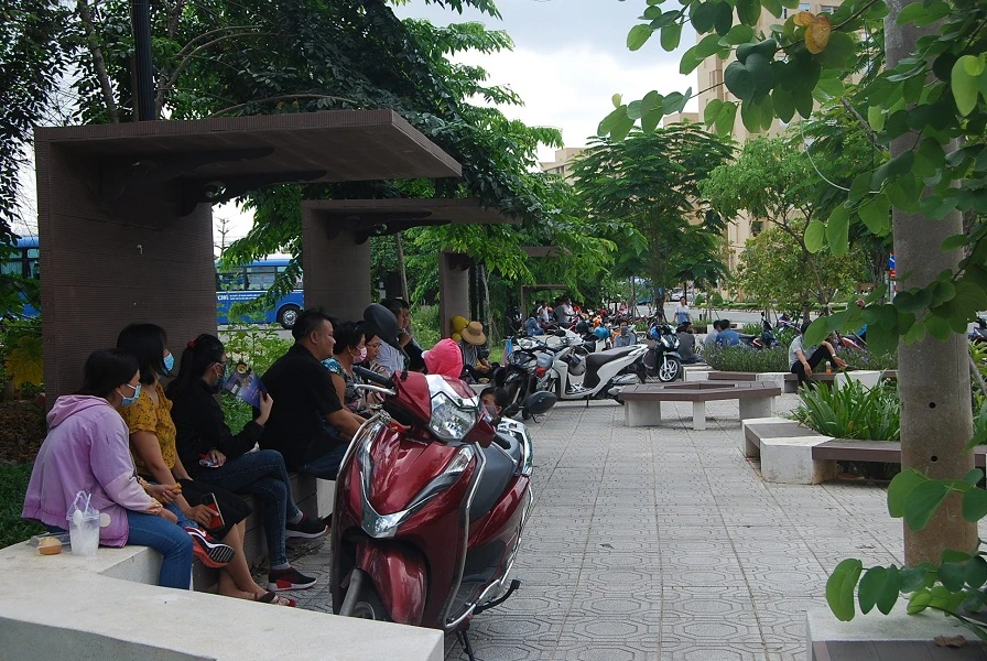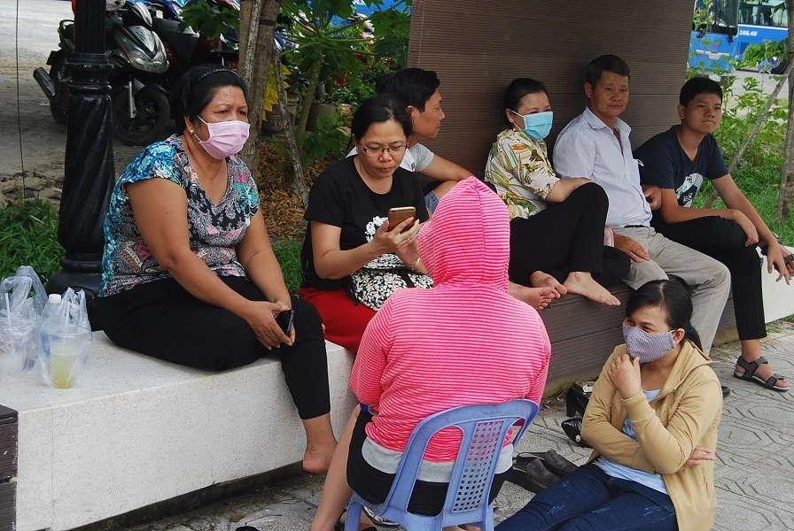 Đông phụ huynh đứng, ngồi quanh các điểm thi chờ con làm bài xong. Ảnh: DANH NGUYỄN