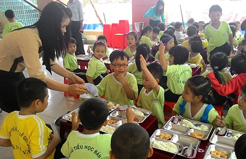 HS Trường Tiểu học Lê Quý Đôn, quận Gò Vấp (TP.HCM) trong giờ ăn trưa bán trú tại trường. Ảnh: PHẠM ANH