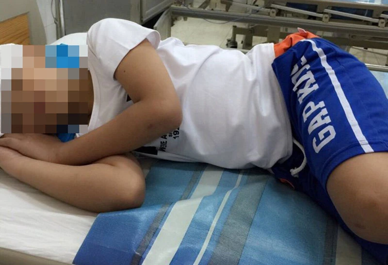 Đến lớp anh không thấy con, thầy cô cũng không ai biết nên tỏa đi tìm thì thấy Tr. đang nằm trong nhà vệ sinh trong tình trạng nôn ói, đi cầu ra quần.
