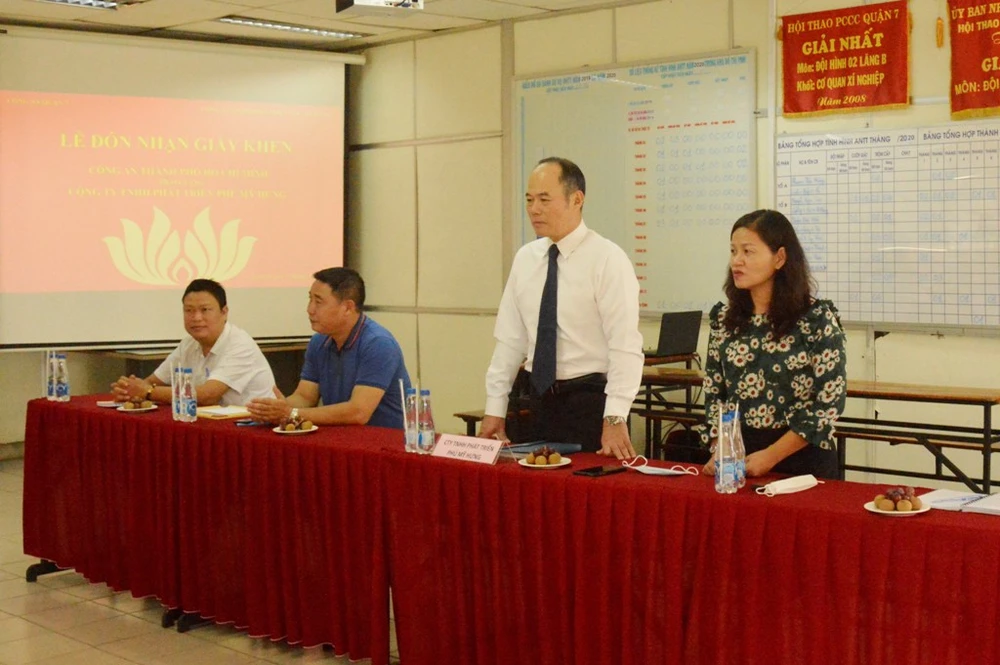Đại diện Công ty Phú Mỹ Hưng gửi lời cảm ơn đến Công an Quận 7 đã hỗ trợ công tác an ninh trong khu vực