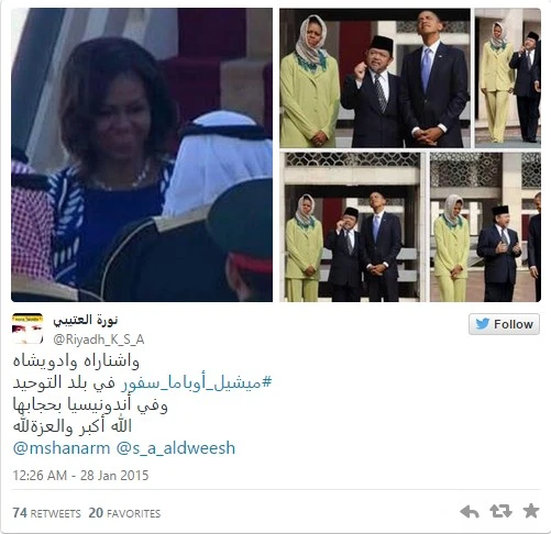 Tuy nhiên, đã có hơn 1.500 đoạn tweet chỉ trích nhắm vào vị Đệ nhất phu nhân Mỹ đã xuất hiện trên mạng xã hội Twitter. Một số người còn cho rằng, trong chuyến thăm gần đây đến Indonesia, bà Michelle đã đội khăn trùm đầu, vậy tại sao ở Ả Rập Xê-út lại không?