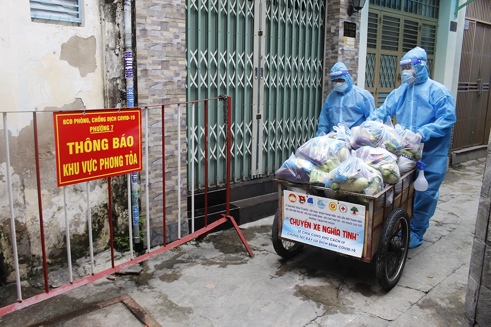 Triển khai gói an sinh, túi thuốc cho người cách ly tại nhà. Ảnh: NGUYỄN YÊN