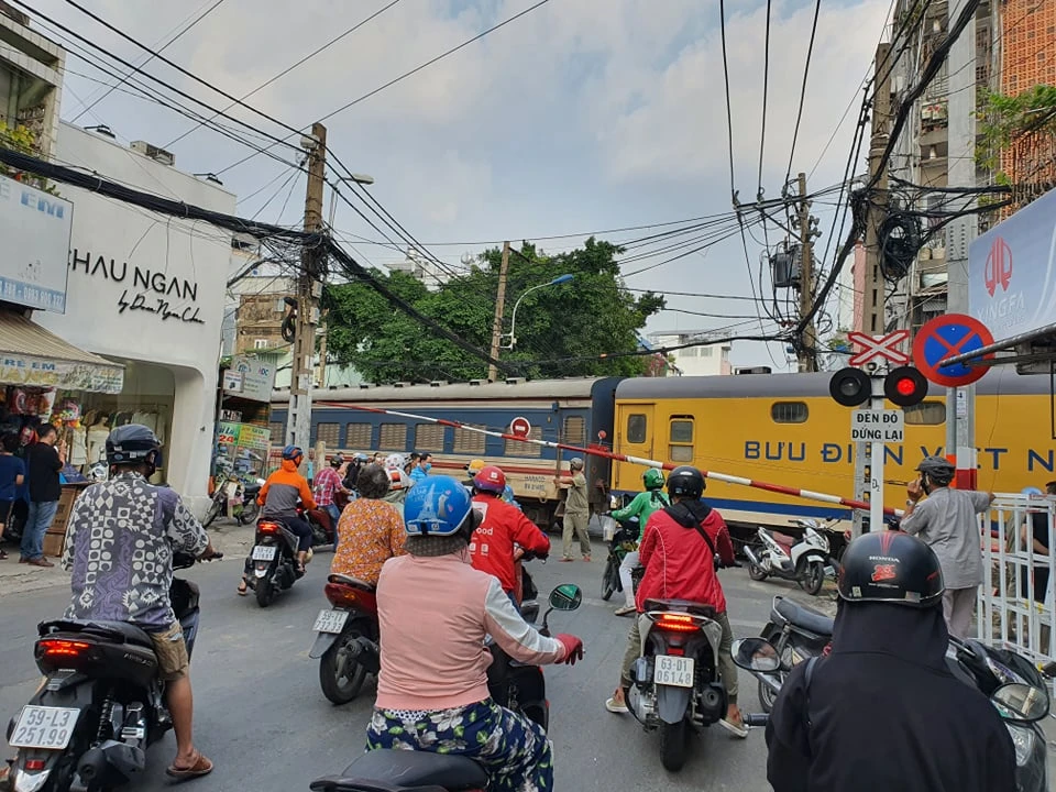 Người dân phải chờ tại gác chắn trên đường Huỳnh Văn Bánh (Phú Nhuận).
