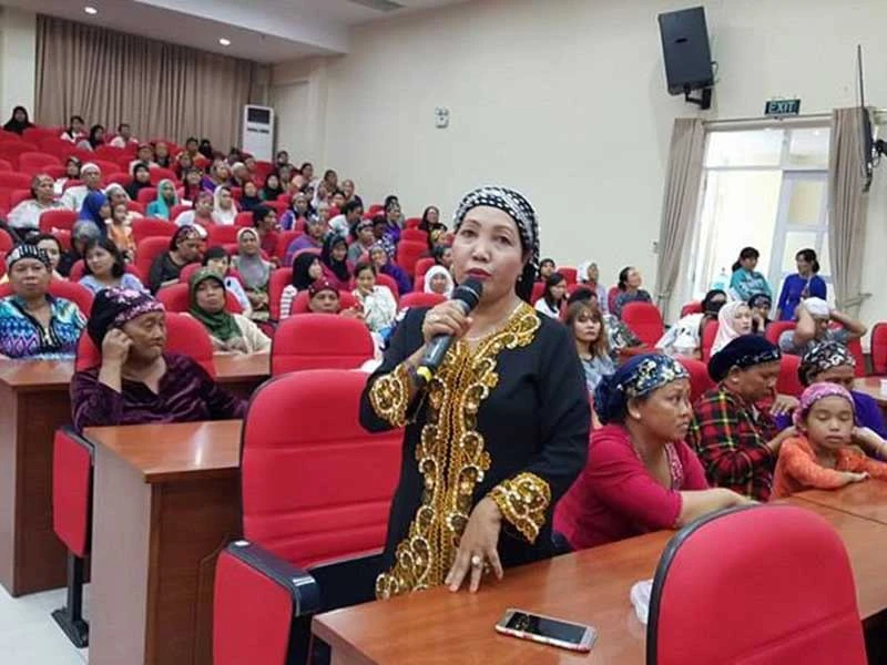 Chị Salykho phát biểu tại buổi họp mặt phụ nữ Chăm. Ảnh: HỒNG MINH