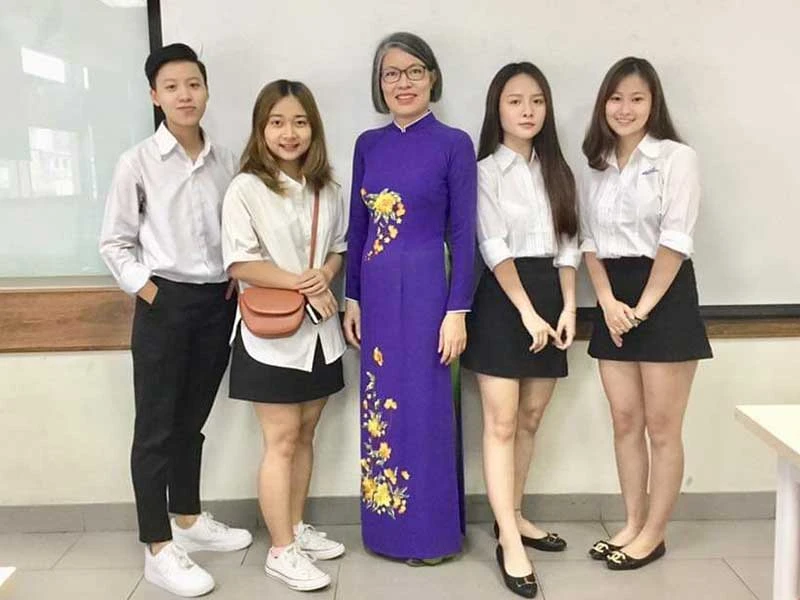 ThS Doãn Thị Ngọc và các sinh viên trong buổi nói chuyện về bình đẳng giới. Ảnh: H.MINH