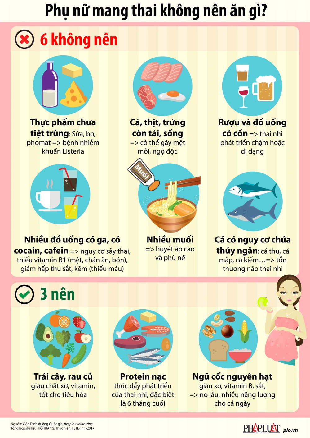 Phụ nữ mang thai phải có một chế độ ăn uống khoa học, trong đó phải tránh những thực phẩm gây hại cho thai nhi.