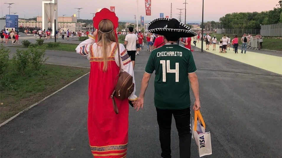 Một người đàn ông Mexico nắm tay một phụ nữ Nga.