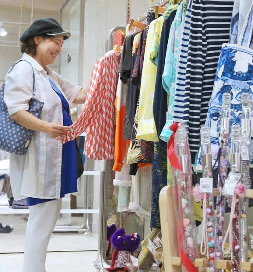 Một phụ nữ Nhật lớn tuổi mua sắm nhãn hàng Re Style Lady ở trung tâm thương mại Mitsukoshi.