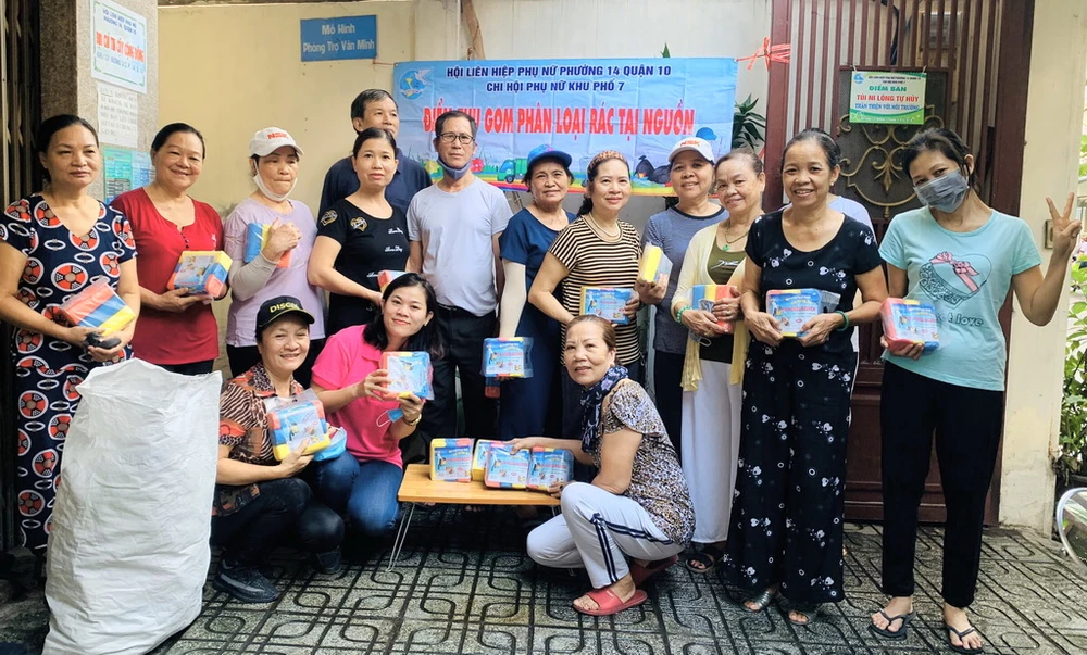 Tại Quận 10, Hội LHPN TP.HCM đã xây dựng “Điểm đổi sản phẩm tái chế”. Cụ thể, người dân đem các chai, bình, ly nhựa đến những điểm này sẽ được đổi lấy gạo. Hội LHPN sẽ dùng các đồ nhựa tái chế, chế tạo thành những vật dụng hữu ích tặng lại cho các hộ dân. Chương trình này nhằm giảm thiểu tối đa rác thải nhựa ra môi trường. Đồng thời, Hội LHPN TP.HCM sẽ tiếp tục duy trì các điểm phân phối túi nylon tự hủy đến từng khu phố, hộ dân.