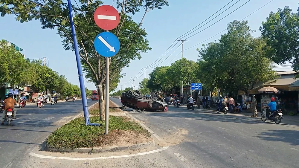 Khi qua cầu Tân Tạo (quận Bình Tân) khoảng 200 m thì xe lao lên dải phân cách trồng cây tông gãy trụ điện chiếu sáng, va vào gốc cây rồi lật ngửa, những người trong ô tô la hét trong hoảng loạn.