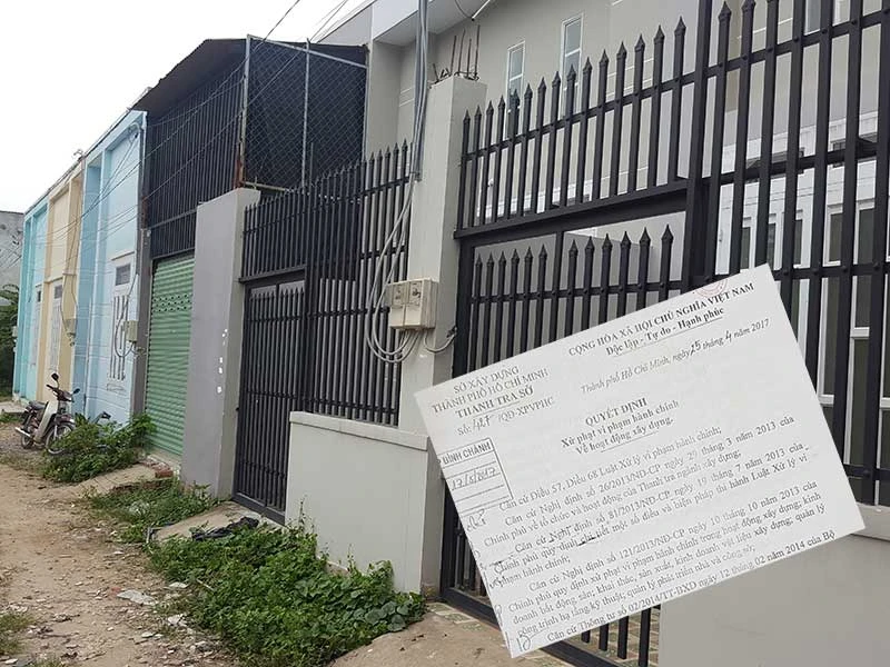 Tiếp đến, tháng 4-2017, Thanh tra Sở Xây dựng ra quyết định xử phạt vi phạm hành chính công trình trên. Theo đó, thanh tra Sở cho hay chủ đầu tư đã có hành vi xây dựng sai phép. Cụ thể là “thi công sai kiến trúc mặt ngoài, sai kết cấu chịu lực chính như chia thành 12 căn, trổ chín cửa đi, ba cửa sổ, xây tường gạch từ 2 m đến 6 m với kết cấu cột bê tông cốt thép, vách gạch, mái tôn”… Với hành vi này, chủ đầu tư bị phạt 20 triệu đồng và “phải tự tháo dỡ phần xây dựng sai phép” nói trên. Thế nhưng chẳng những chủ đầu tư này không thực hiện mà còn chuyển nhượng bằng giấy tay cho nhiều người. Tính đến tháng 5-2017, ít nhất có bốn trường hợp mua nhà của ông Tài đã dọn vào ở.