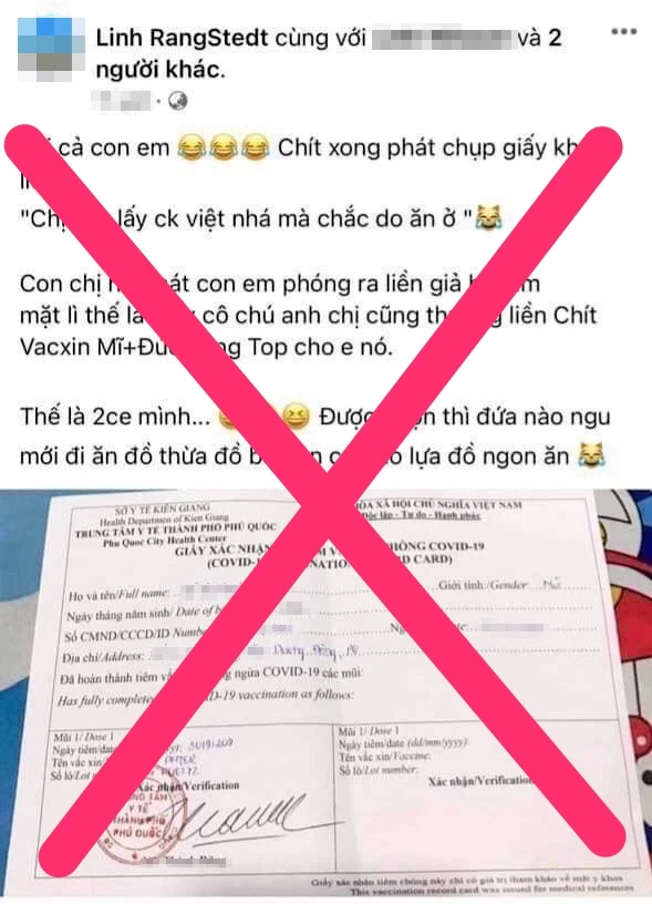 Qua xác minh bước đầu, Công an TP Phú Quốc xác định, nội dung chị L. đăng tải là sai sự thật. Cụ thể, chị HTTM được tiêm vaccine Pfizer là vì chị này thuộc đối tượng phụ nữ đang mang thai.