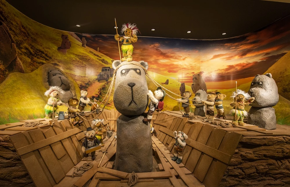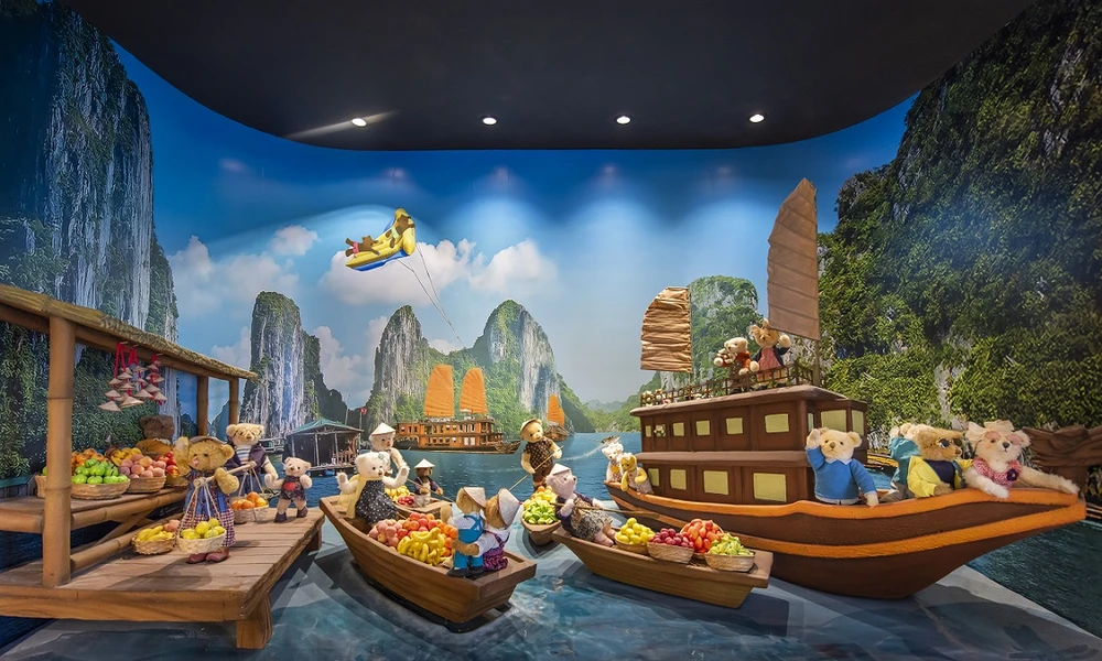 Tại đây, du khách còn được thảo mái check-in với những tạo hình gấu Teddy độc đáo nhất thế giới như: Teddy nhảy dù xuống cung đình Huế, Teddy trong trang phục áo dài truyền thống, Teddy chèo thuyền tham quan vịnh Hạ Long, Teddy hòa mình trong không khí chiến thắng đầy phấn khích của đội tuyển U23 Việt Nam…