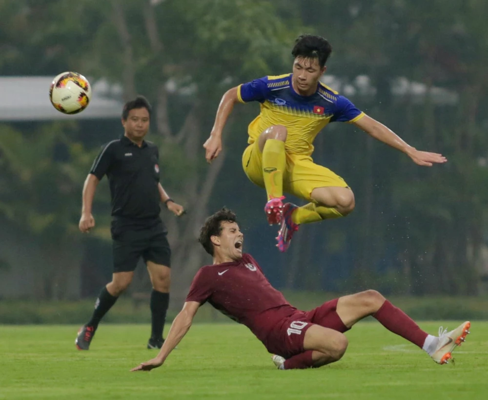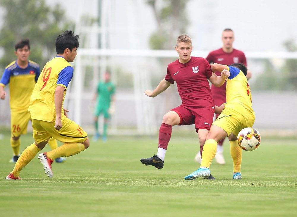 U-19 Việt Nam vừa có một trận đấu tập chất lượng với quân xanh to cao đến từ châu Âu. Ảnh: AN