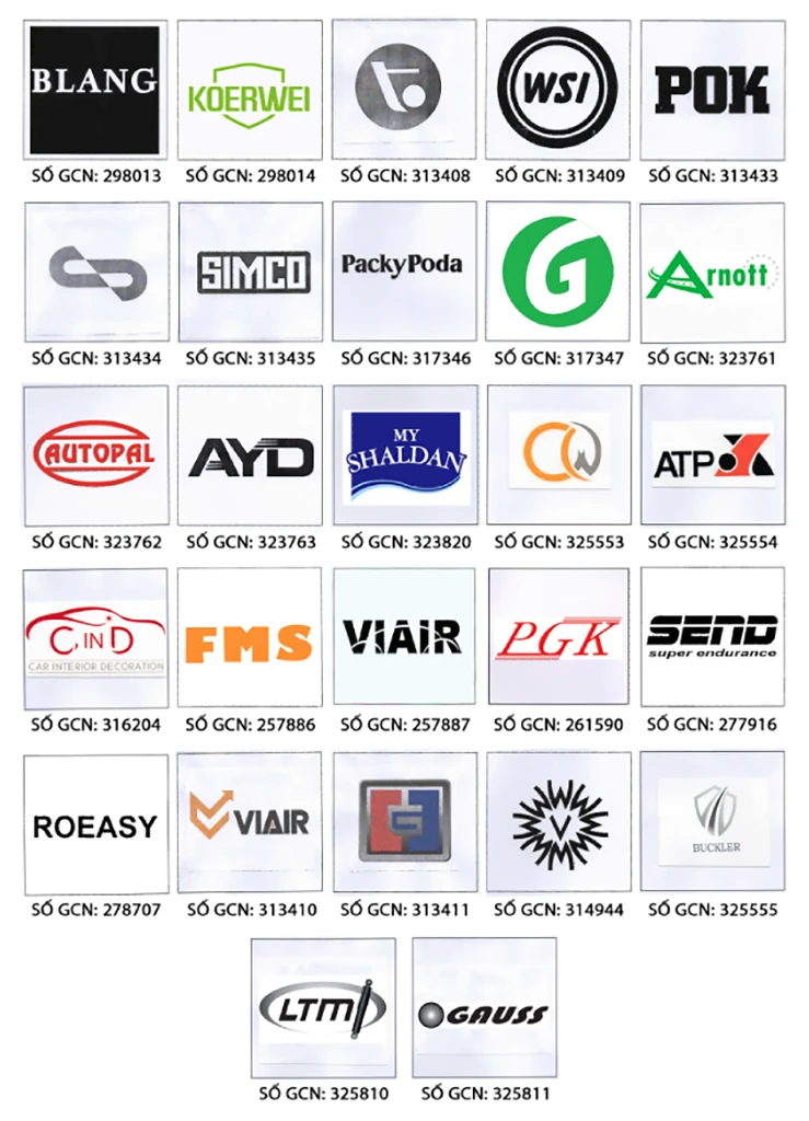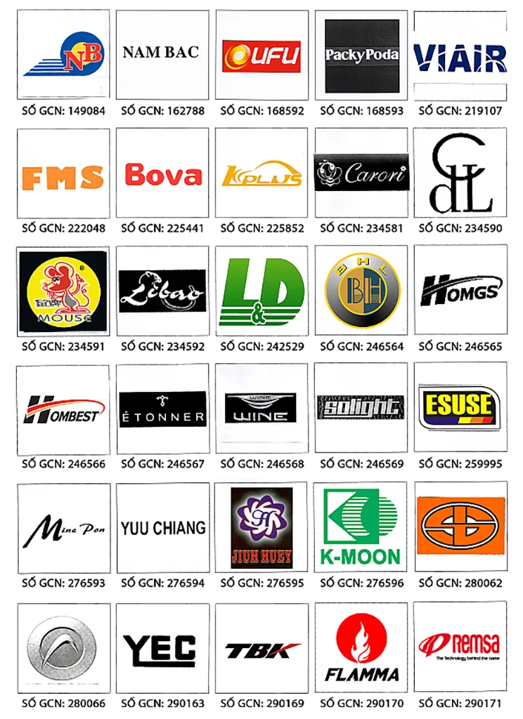 Các nhãn hàng, thương hiệu đã được cấp giấy chứng nhận của Cục Sở hữu trí tuệ.