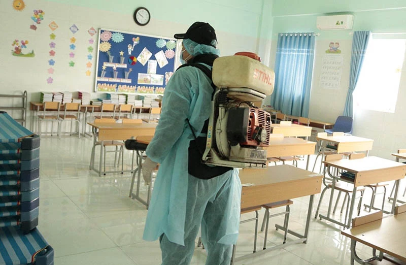 Phun thuốc khử trùng trường học ở Phú Yên.