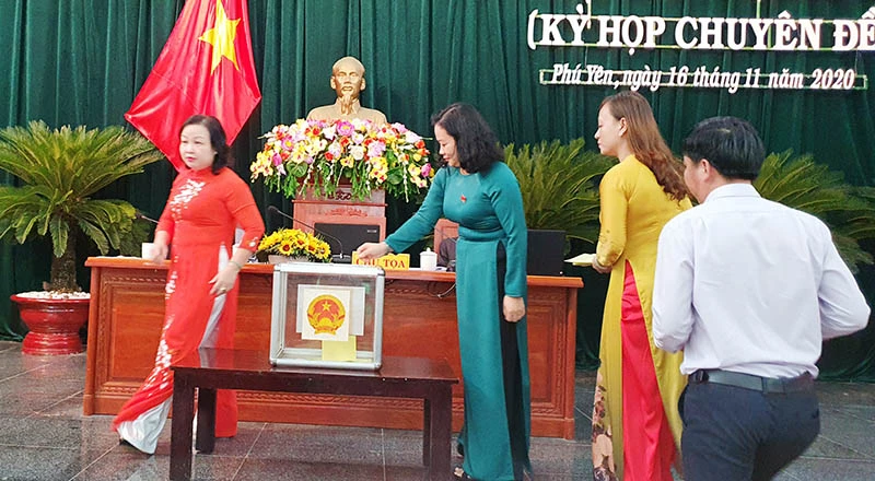 Bỏ phiếu bầu các chức danh tại kỳ họp HĐND tỉnh Phú Yên. Ảnh: TẤN LỘC