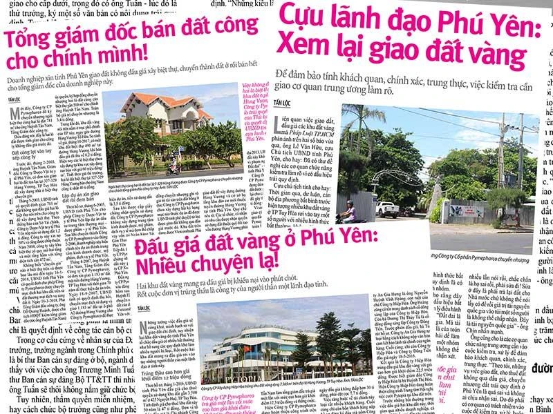 Theo đó, hầu hết việc giao đất, cho thuê, đấu giá các khu đất vàng liên quan đến các công ty người thân một lãnh đạo cấp cao tỉnh Phú Yên đều có dấu hiệu trái pháp luật.