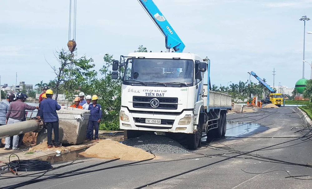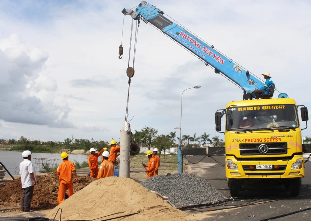 Khắc phục hệ thống điện tại TP Tuy Hòa. Ảnh: TẤN LỘC