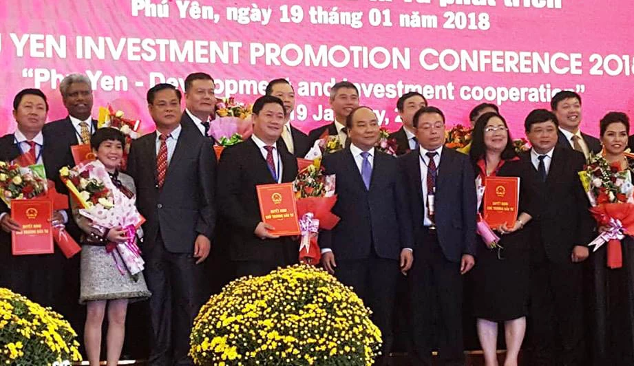 UBND tỉnh Phú Yên đã trao quyết định chủ trương đầu tư, chứng nhận đăng ký đầu tư cho 17 dự án với tổng mức đầu tư dự kiến gần 12.400 tỉ đồng. Đồng thời, trao thông báo tiếp cận, khảo sát, nghiên cứu đầu tư cho 10 dự án, trao biên bản ghi nhớ đầu tư cho năm dự án. |