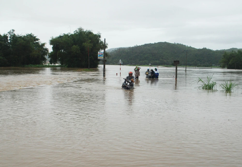 Xã An Định, huyện Tuy An (Phú Yên) bị ngập nặng. Ảnh: KHẮC NHO