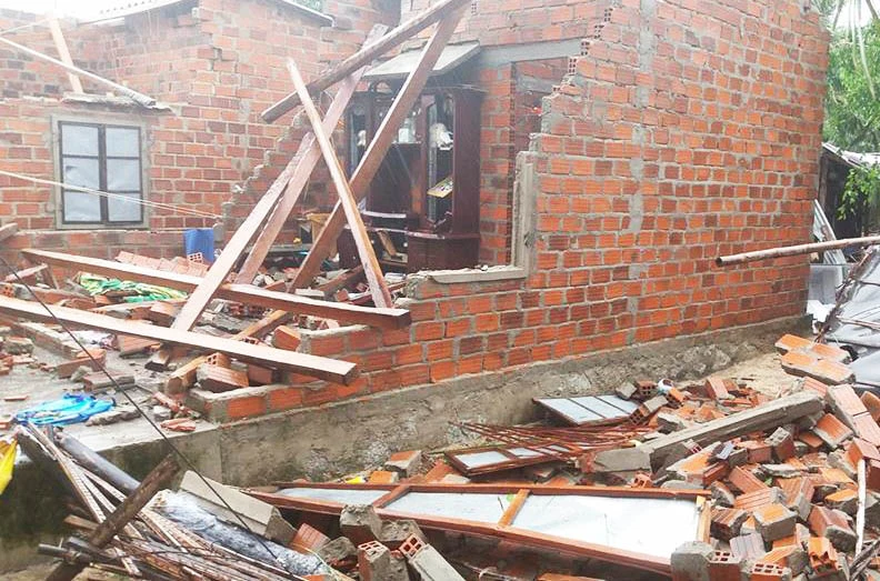 Một ngôi nhà bị sập hoàn toàn ở thị xã Sông Cầu. Ảnh: NGUYỄN HỮU KHOA
